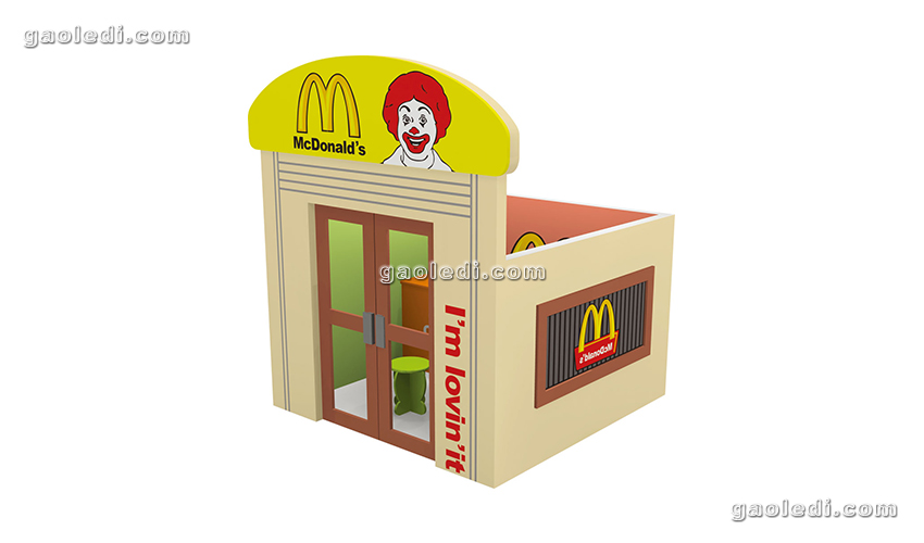 2、造型新颖 幼儿娃娃家以人的生活世界为设计原型,相当于一个微缩的生活环境。在娃娃家中有厨房、客厅、卧室、邮局、医院、美容院、银行等等生活配套设施,这些都是儿童将来步入社会需要接触到的东西。逼真形象的环境情景模拟让儿童在角色扮演和玩乐中认识生活,了解社会。