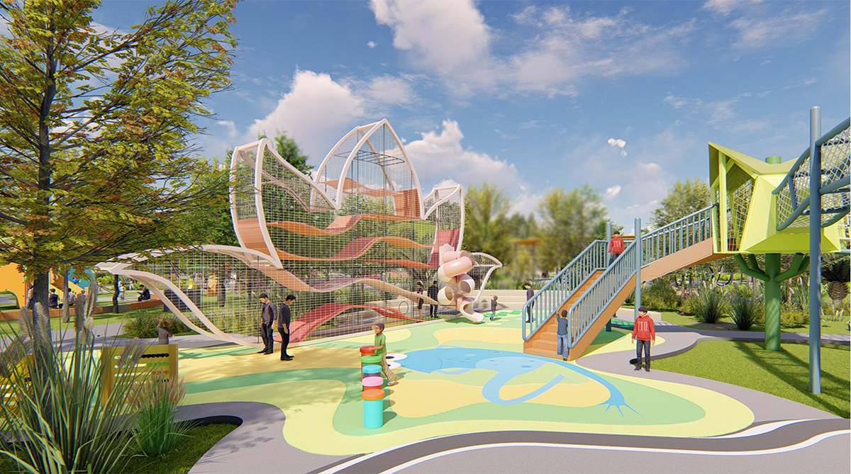 景观规划:景观手法规划场地,形成交互,增强体验。 流线空间:提取历史文化,植入到空间,形成空间变化。 设备植入:独特的造型、肌理、色彩等融入到场景当中。 场景表达:空间串联,打破常规,塑造特色的主题乐园。 故事串联:利用故事吸引流量,给运营打造良好的基础。 产品运营:文化结合设计,让儿童在游玩的同时了解当地文化。