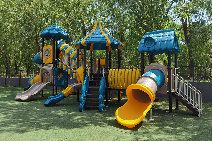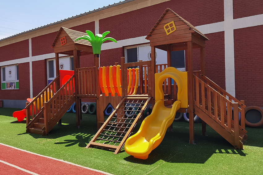 琳汐国际幼儿园所有儿童设施分为几个区域,攀爬区、滑梯区、造型区。