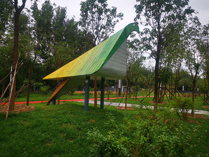 公园内除了绿化之外,还配置景观墙、座椅、秋千、导视牌等景观小品,让每一处都是一个景点。